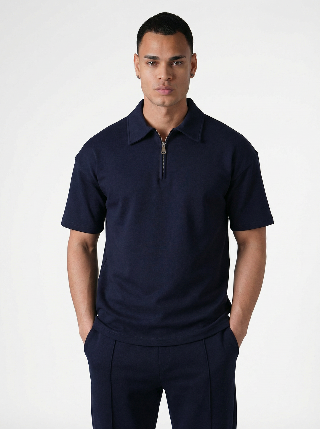 Ensemble Homme Polo Zippé et Pantalon Coupe Moderne - Bleu Marine