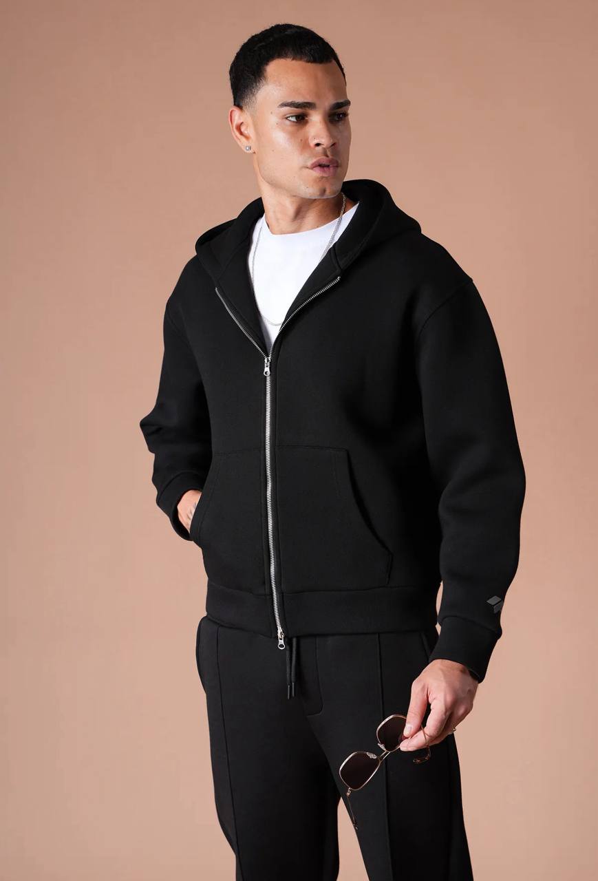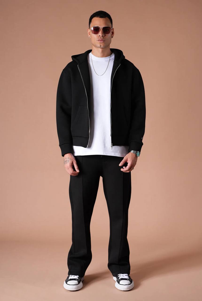 Adoptez un look urbain épuré avec cet ensemble veste à capuche zippée et pantalon assorti, pensé pour allier confort, style et praticité.