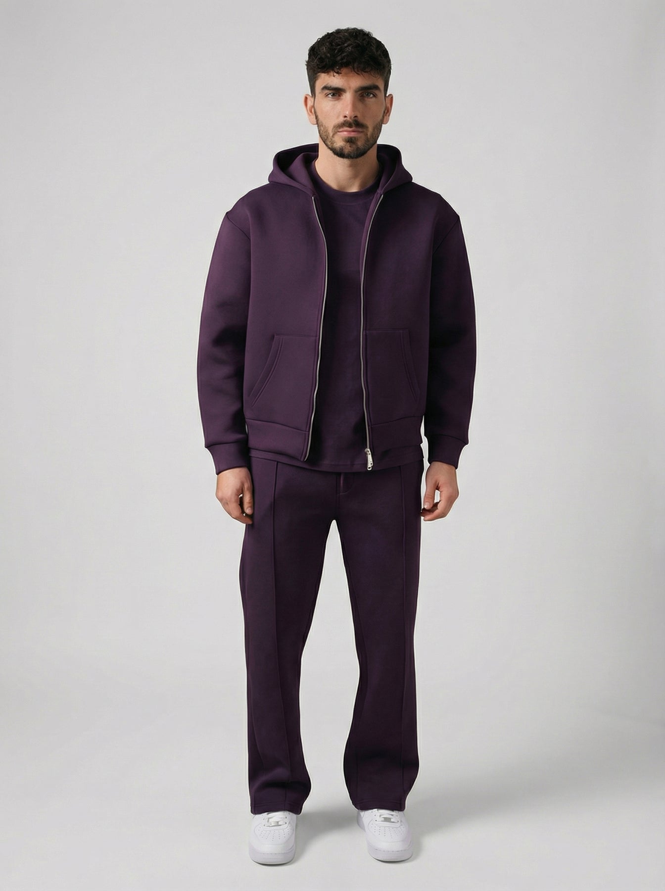 Confectionné dans un tissu molletonné premium, cet ensemble offre une coupé ajustée mais confortable, parfaite pour les journées actives comme les moments chill. La veste zippée à capuche est dotée de poches kangourou et de finitions soignées, tandis que le pantalon intègre une taille élastiquée avec cordon de serrage et poches latérales pour un usage quotidien.
