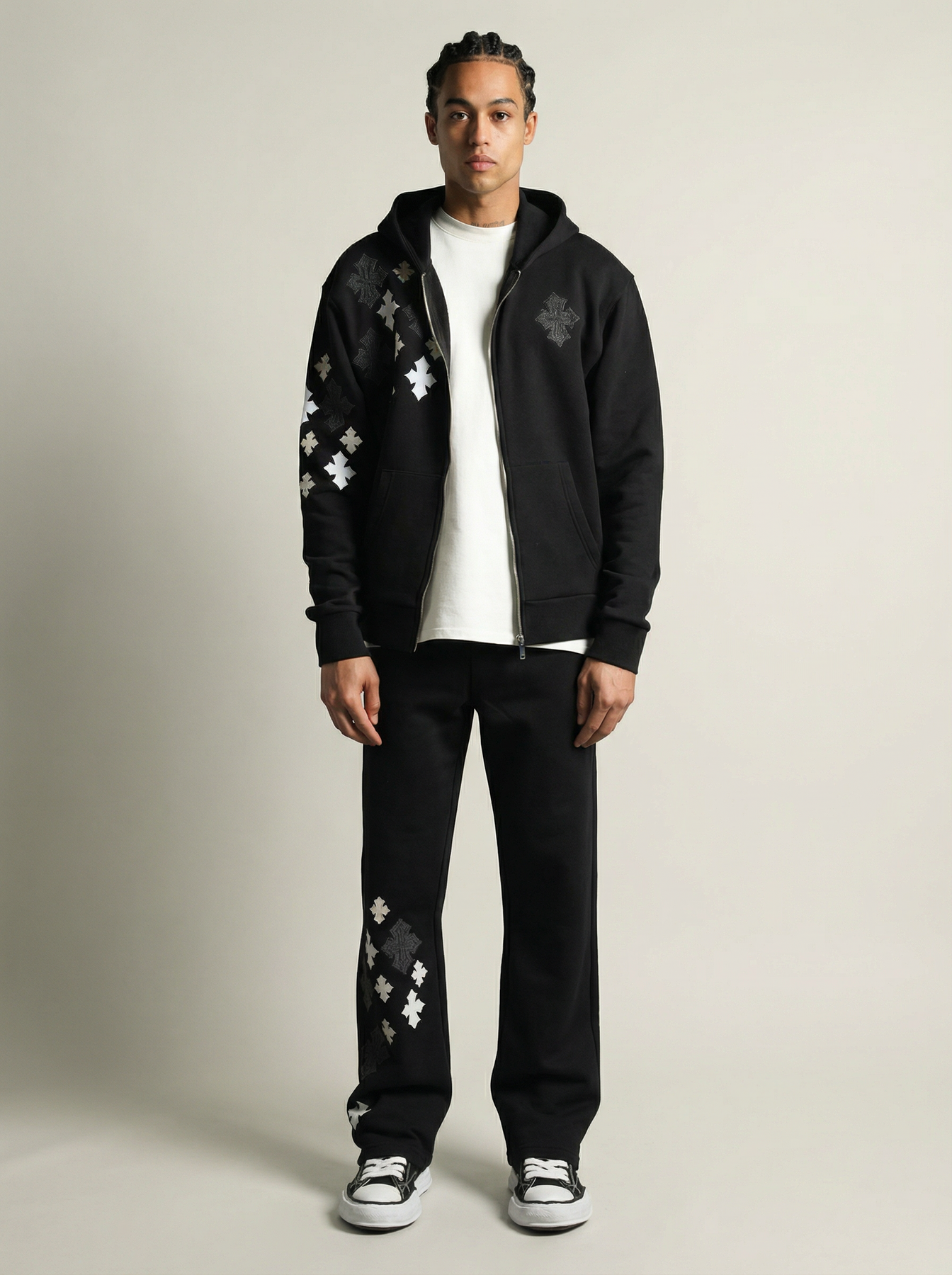Cet ensemble survêtement homme gris à capuche se distingue par son design streetwear moderne et ses motifs graphiques contrastés qui apportent une touche de caractère à une silhouette épurée. Composé d’une veste zippée avec capuche et poches latérales, associée à un pantalon confortable à coupe droite, il offre un excellent équilibre entre style et praticité. Sa matière en coton mélangé assure douceur, respirabilité et résistance pour un confort durable au quotidien. Pensé pour les amateurs de looks urbains, cet ensemble est idéal pour les sorties, les déplacements ou les moments de détente, tout en garantissant une allure affirmée et contemporaine en toute saison.