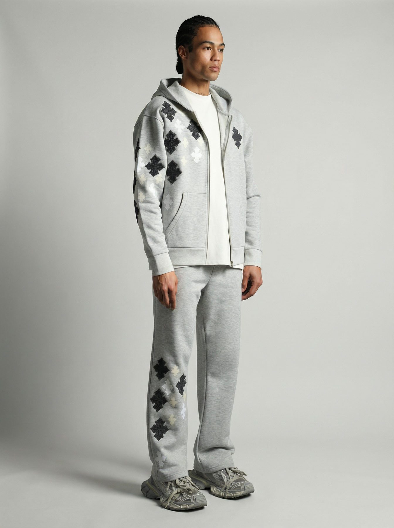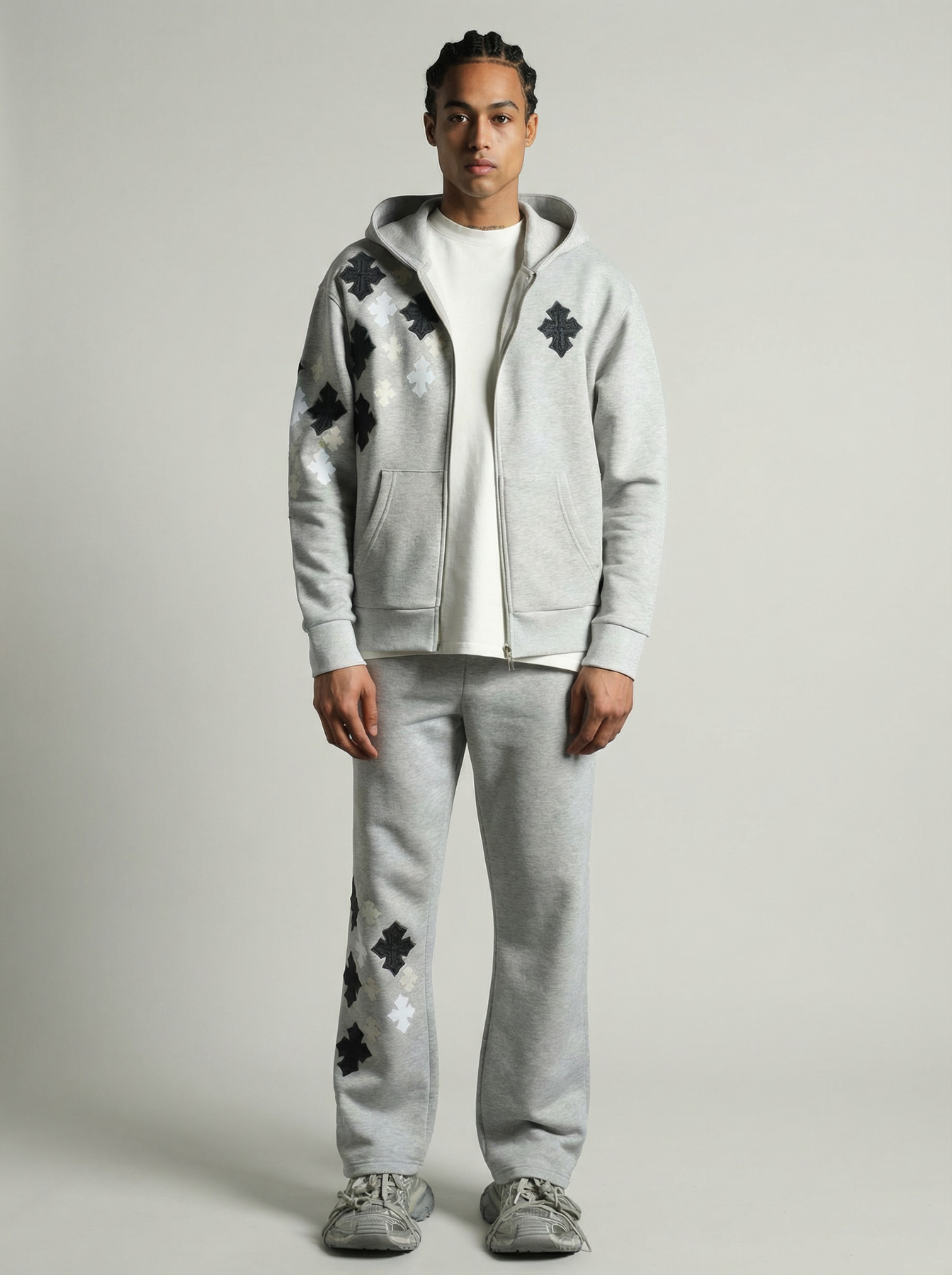 Ensemble Survêtement à Capuche Veste & Pantalon Motifs Streetwear - GRIS