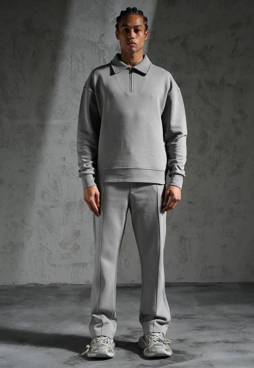 Ensemble Survêtement Homme Col Zippé - Gris Clair