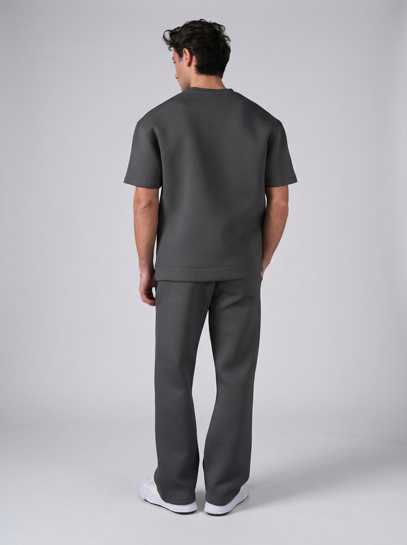 Affirmez un style moderne et haut de gamme avec cet ensemble homme composé d’un t-shirt structuré et d’un pantalon coupe droite élégante. Son design minimaliste et ses finitions soignées offrent une silhouette nette et sophistiquée, idéale pour un look casual chic maîtrisé.