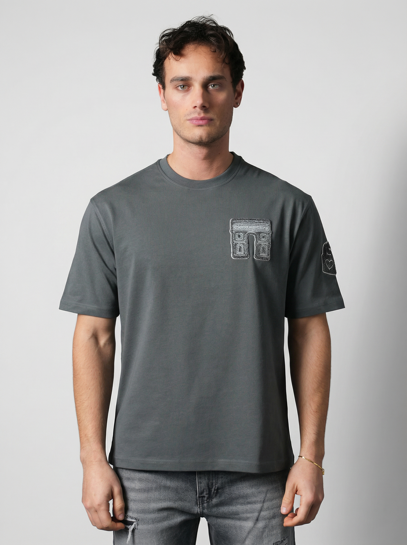 Affirmez votre style avec ce t-shirt homme au design streetwear moderne, doté d’un patch graphique texturé au dos et d’un détail brodé sur la poitrine. Son contraste visuel et ses finitions travaillées apportent une vraie identité à votre tenue.