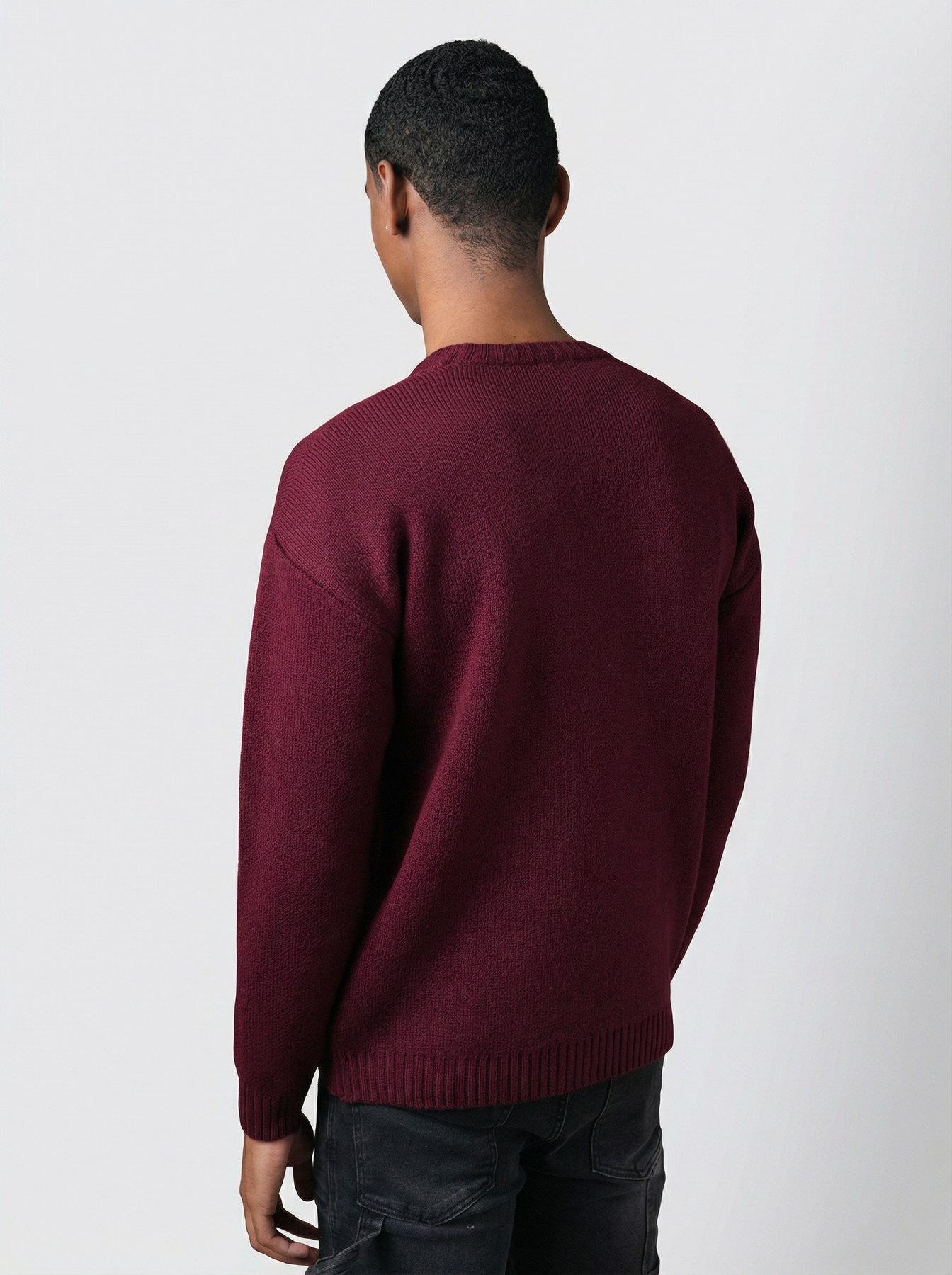 Pull Trèfle Tricot graphique brodé - Bordeaux