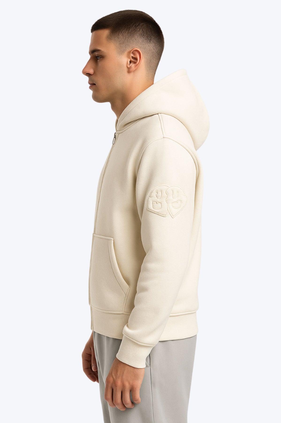 Sweat zippé à capuche "I.P. PRIVATE" unisexe - Beige