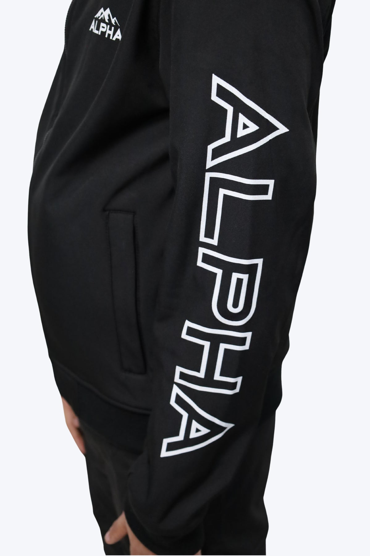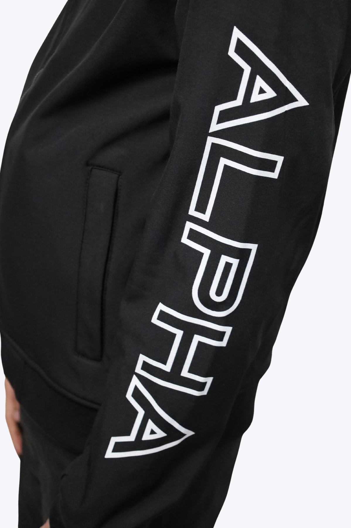• Logo ALPHA brodé poitrine + lettrage XL manche droite : visuel fort, reconnaissable et affirmé.