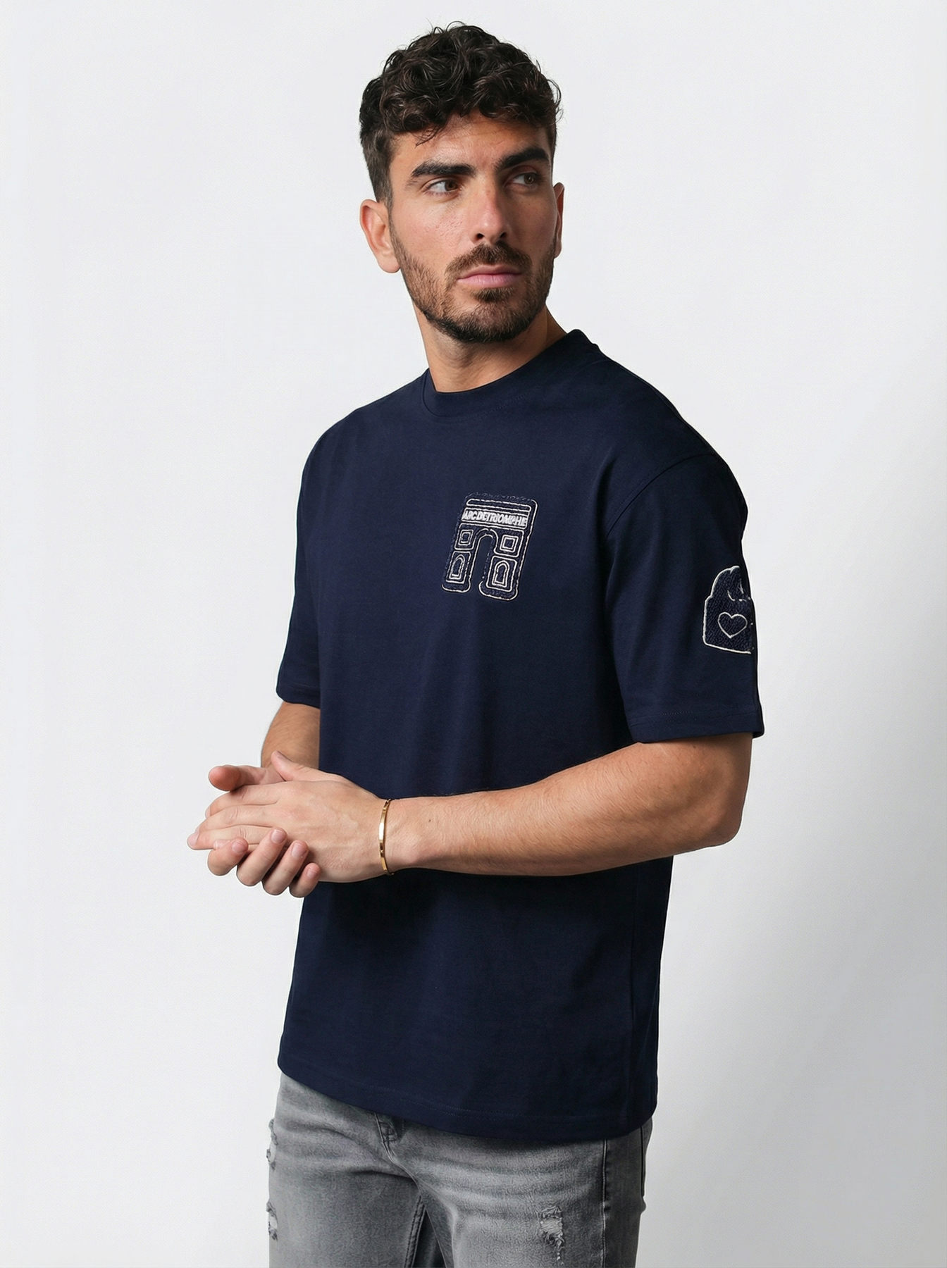 Affirmez votre style avec ce t-shirt homme au design streetwear moderne, doté d’un patch graphique texturé au dos et d’un détail brodé sur la poitrine. Son contraste visuel et ses finitions travaillées apportent une vraie identité à votre tenue.