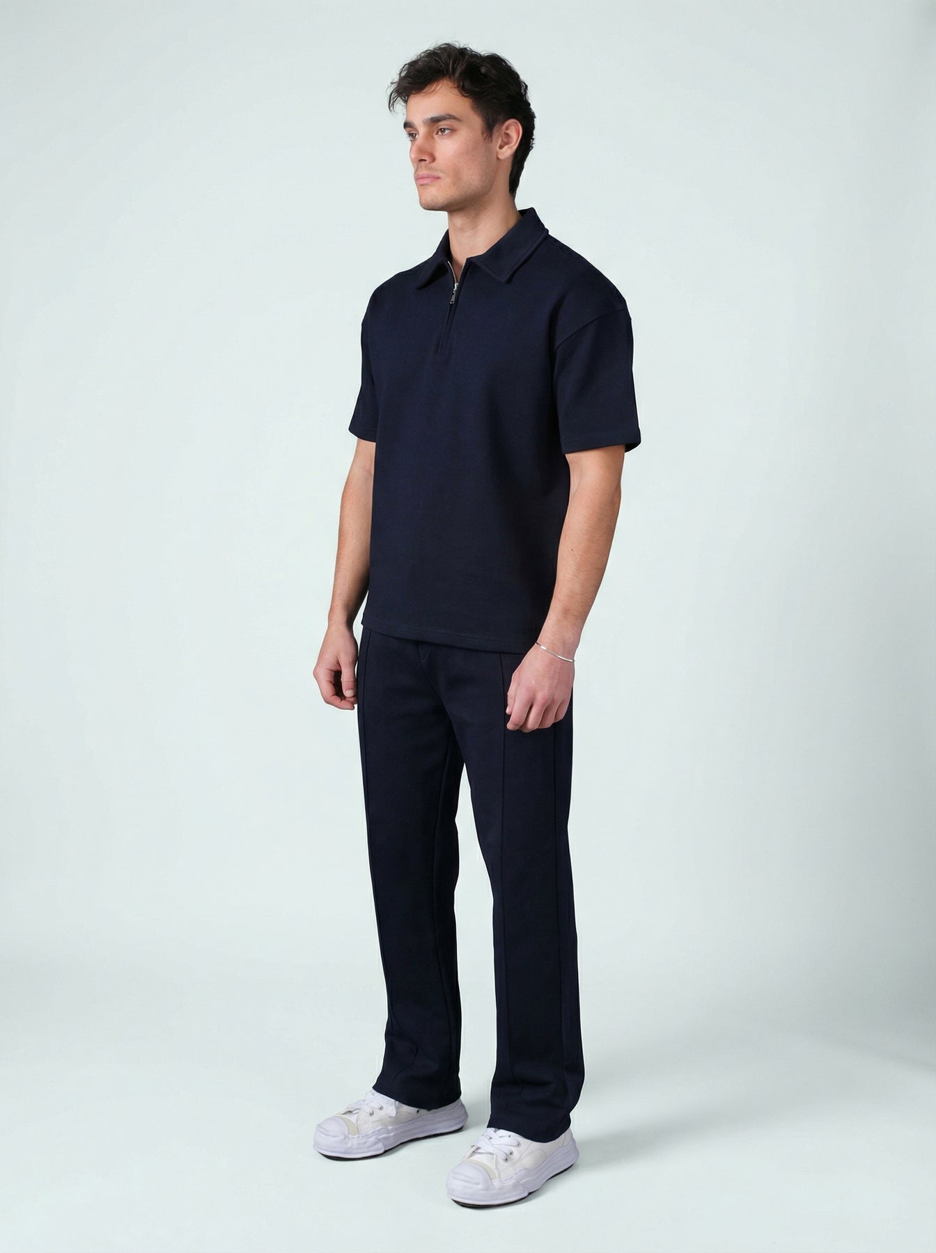 Ensemble Homme Polo Zippé et Pantalon Coupe Moderne - Bleu Marine