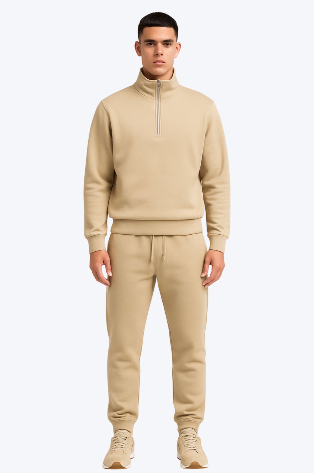 Alliez confort et élégance avec cet ensemble sportwear pensé pour les hommes modernes. Confectionné dans un tissu doux, épais et agréable au toucher, cet ensemble est idéal aussi bien pour vos journées détente que vos sorties urbaines. Le haut à col montant zippé apporte une touche contemporaine et structurée, tandis que le pantalon assorti assure une silhouette épurée grâce à sa coupe fuselée et ses chevilles resserrées.