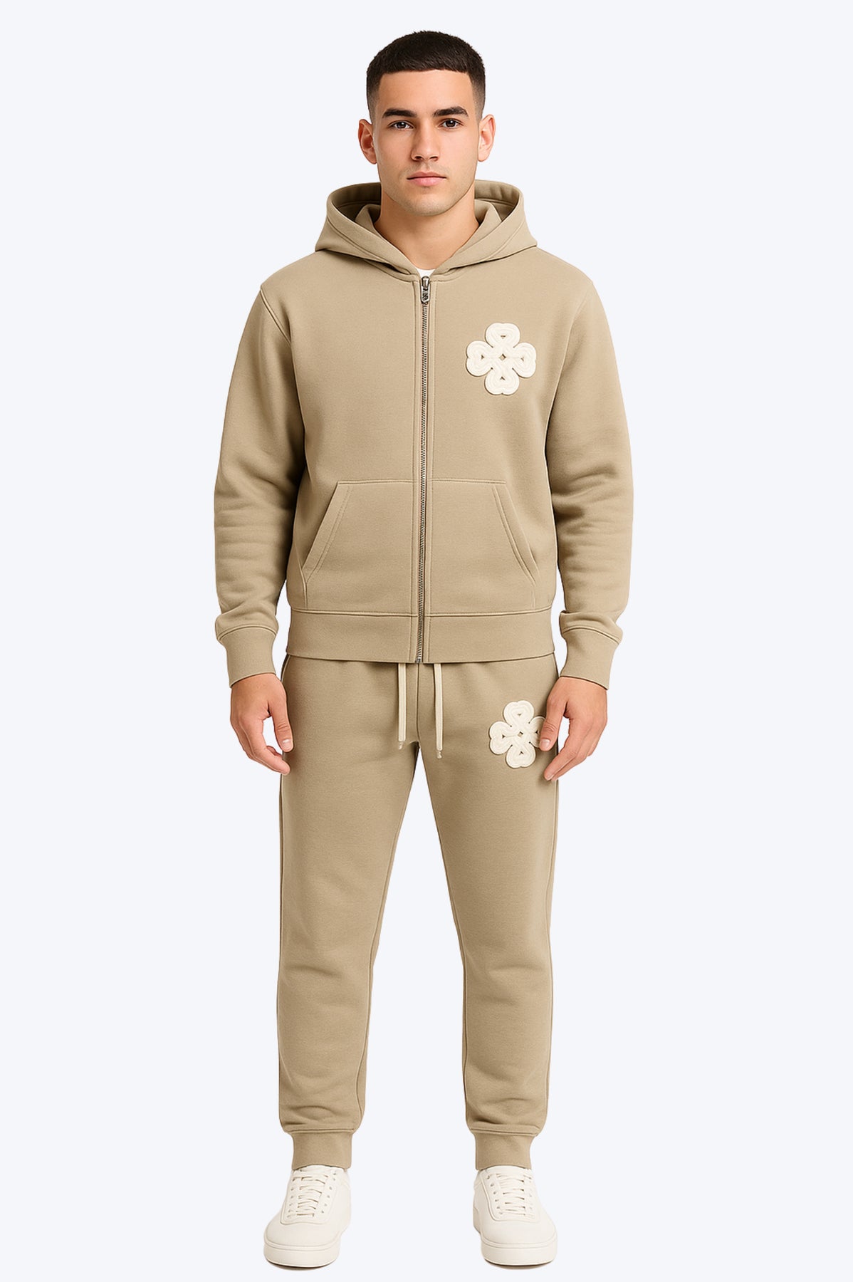 Adoptez un look streetwear raffiné avec notre ensemble de survêtement pour homme zippé avec capuche et broderie fleur signature. Ce modèle incarne parfaitement l’équilibre entre confort, style et originalité. Que ce soit pour vos journées chill, vos sorties en ville ou vos sessions sport, ce survêtement est votre allié au quotidien.