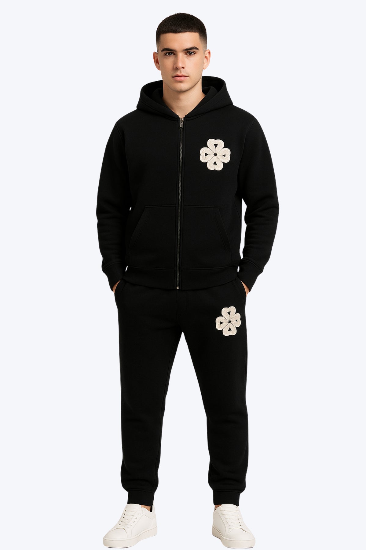 Adoptez un look streetwear raffiné avec notre ensemble de survêtement pour homme zippé avec capuche et broderie fleur signature. Ce modèle incarne parfaitement l’équilibre entre confort, style et originalité. Que ce soit pour vos journées chill, vos sorties en ville ou vos sessions sport, ce survêtement est votre allié au quotidien.