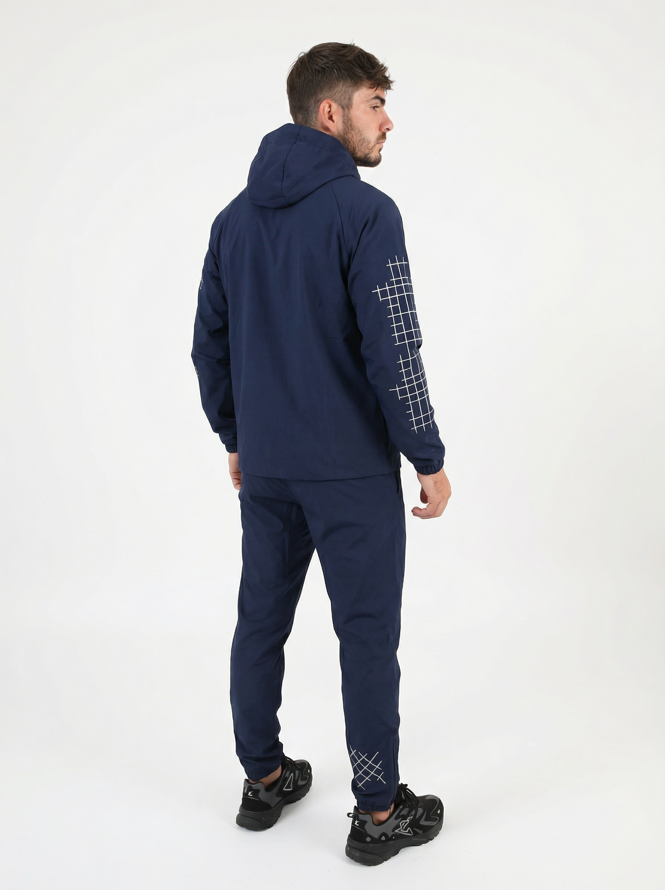 • Motifs géométriques imprimés (style croisé) sur les manches, jambes et poches