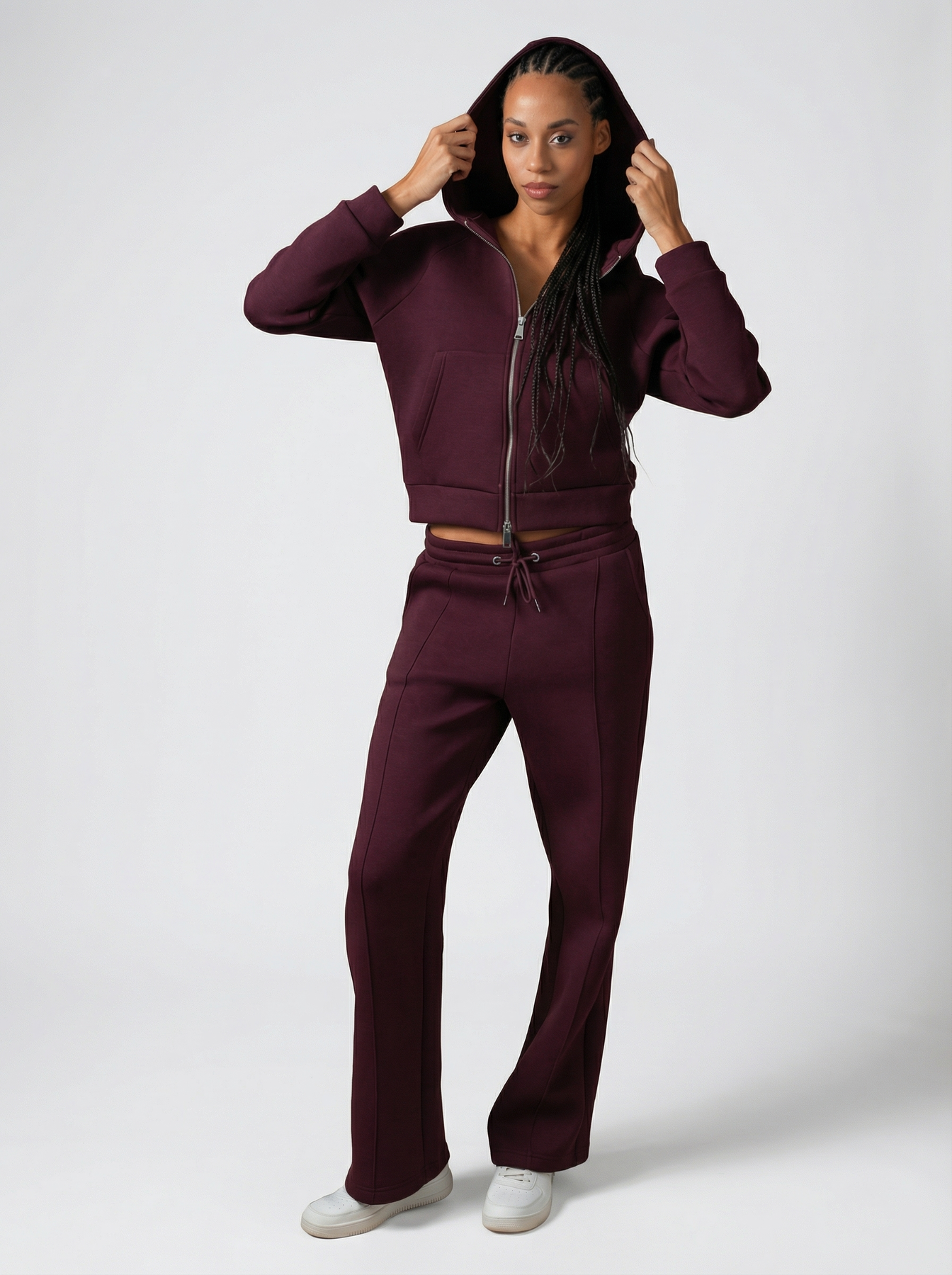 Confectionné dans un tissu molletonné premium, cet ensemble offre une coupé ajustée mais confortable, parfaite pour les journées actives comme les moments chill. La veste zippée à capuche est dotée de poches kangourou et de finitions soignées, tandis que le pantalon intègre une taille élastiquée avec cordon de serrage et poches latérales pour un usage quotidien.